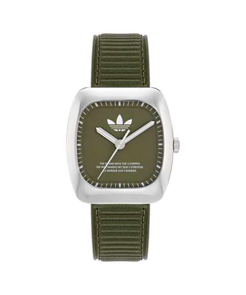 The Adidas Originals® Analogue 'Retro Wave One' Unisex's Watch AOSY24526 combines cutting-edge style with practical function, making it an ideal accessory for any outfit. Crafted for versatility, this casual piece captures the essence of authentic street style while ensuring top-notch reliability and performance. With its striking green dial and a durable stainless steel case, this watch fits seamlessly into both outdoor adventures and urban explorations. It features a unique rectangular case design that stands out without overwhelming, measuring 37mm in diameter and only 8mm in thickness. The mineral glass window offers robust protection, while the vibrant green leather band, measuring 20cm in length and 19mm in width, enhances both comfort and style. Well suited for everyone, this timepiece operates on precise quartz movement and easily withstands everyday wear with water resistance up to 5 bars. Its analytically designed and user-friendly display showcases hours, minutes, and seconds, providing excellent legibility in any light. Moreover, with a weight of 56 grams, the watch is lightweight enough to be worn all day without any discomfort. The buckle clasp ensures it sits securely on the wrist, making the Retro Wave One an essential addition to any accessory collection.Shop Adidas Originals AOSY24526 at Ormoda