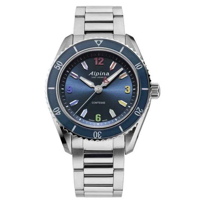 Alpina is a brand that embodies the spirit of adventure and that timeless elegance expected of Swiss watchmaking. Founded in Geneva in 1883, Alpina has a rich heritage of producing high-quality, innovative timepieces that cater to both sport aficionados and luxury watch enthusiasts alike. Their commitment to precision, durability, and style is evident in every creation, blending functionality with aesthetic appeal. As a pioneer in the field of watchmaking, Alpina has continuously pushed the limits, developing iconic models that reflect the beauty and complexities of nature, embracing both the earth and the sky. Each watch is thoughtfully crafted, ensuring that it does not just serve as a tool for timekeeping but also as a statement of style and sophistication. With a focus on quality materials and expert craftsmanship, Alpina stands as a symbol of excellence in the world of horology, truly appealing to women who appreciate both fashion and function. Introducing Alpina® Analogue 'Alpiner Comtesse Sport' Women's Watch AL-235NRB3C6B