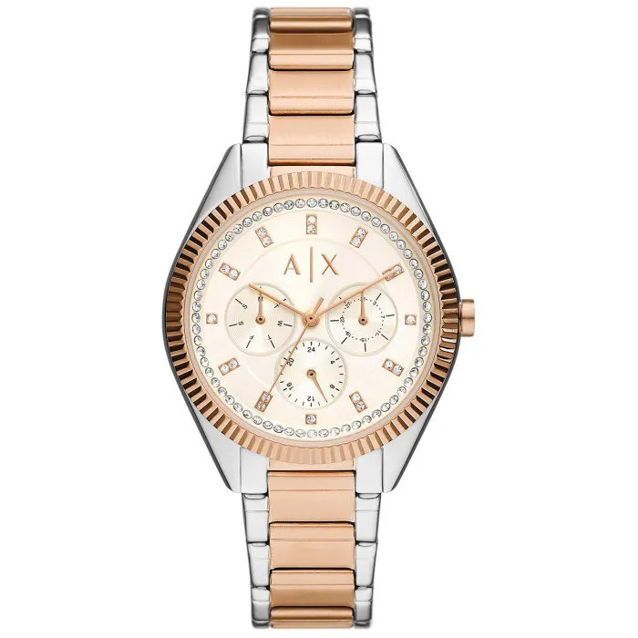 Armani Exchange is a brand that seamlessly blends contemporary fashion with timeless elegance, making it a go-to choice for those who appreciate stylish accessories. The brand embodies a youthful spirit that appeals to a diverse audience, celebrating individuality while ensuring high-quality craftsmanship. Each piece is thoughtfully designed, capturing the essence of urban style combined with functional features. With a commitment to innovation and a modern aesthetic, Armani Exchange has become synonymous with sophistication and charm in the accessory market. When you wear an Armani Exchange piece, you’re not just wearing a watch; you’re showcasing a piece of art that reflects your personality and taste. The focus on detail ensures that each creation stands out, offering customers a unique expression of style. From casual outings to more formal occasions, Armani Exchange watches are designed to accompany you on all aspects of life, marrying practicality with fashionable elements.Introducing Armani Exchange® Multi Dial 'Lady Giacomo' Women's Watch AX5662