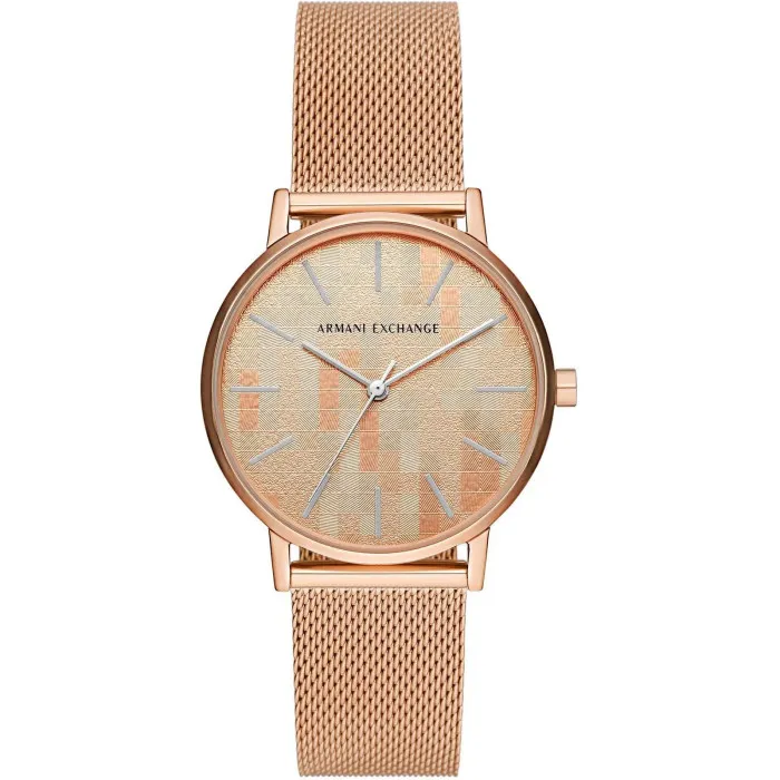 Armani Exchange stands as a beacon of modern luxury, creating pieces that speak volumes about personal style and authenticity. Their commitment to quality is evident in every detail, showcasing a meticulous approach to watchmaking that combines innovative designs with the latest in technology. The brand captures the energy of urban life, incorporating contemporary trends that resonate with a youthful audience, yet remain timeless in their appeal. Each piece reflects the brand's ethos of balancing fashion with functionality, encouraging self-expression through stylish accessories. The allure of Armani Exchange lies not just in their exquisite craftsmanship but also in their ability to fuse practicality with elegance. They craft pieces that are not just adornments but are transformative in nature, elevating both everyday attire and upscale ensembles. With a history rich in fashion and design excellence, Armani Exchange continues to redefine luxury, ensuring that each watch and jewelry piece is a perfect extension of the wearer’s unique personality and lifestyle. When you choose Armani Exchange, you embrace a lineage of style that celebrates both the bold and the sophisticated, empowering you to wear your confidence with pride.Introducing Armani Exchange® Analogue 'Lola' Women's Watch AX5584