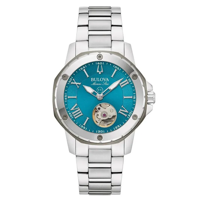 Introducing the Bulova® Analogue 'Marine Star' Women's Watch 98L317, a delicate fusion of elegance and functionality. This exquisite timepiece is crafted with precision, showcasing Bulova's commitment to quality. The stainless-steel case, adorned with a lustrous silver hue, forms a sturdy yet stylish silhouette against the vibrant blue dial. This captivating dial is protected by sapphire glass, ensuring durability while enhancing the watch's sophisticated charm. With a perfect diameter of 35mm, it sits gracefully on the wrist, making it an ideal companion for both casual and formal occasions. The automatic movement guarantees impeccable timekeeping, reflecting Bulova's dedication to horological excellence. A deployment clasp secures the stainless-steel band, which has been meticulously designed for comfort and style. The band, measuring 19cm in length and 17mm in width, seamlessly complements the watch case's thickness of 10mm. Boasting a water resistance of up to 10 bars, this watch is not just a piece of jewelry but also a reliable partner for adventures both on land and sea. The feminine touch of the 'Marine Star' series encapsulates the spirit of modern women who appreciate luxury blended with practicality. Weighing a mere 118 grams, it feels light and elegant on the wrist. The watch also features a remarkable lug to lug height of 42mm, ensuring a flattering fit for diverse wrist sizes. With the Bulova® Analogue 'Marine Star', each glance at your wrist serves as a reminder of beauty and sophistication.Shop Bulova 98L317 at Ormoda