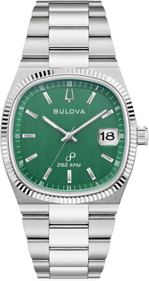 The Bulova® Analogue 'Super Seville' Men's Watch 96B439 is a stunning representation of timeless elegance and advanced craftsmanship. This watch is crafted for the modern man who appreciates both style and sophistication. It features a sleek round case made from high-quality stainless steel, measuring 37mm in diameter and 10mm in thickness. The vibrant green dial adds a unique flair, enhanced further by a sapphire glass window, ensuring durability and clarity. It not only tells time but also complements your attire, making it perfect for both casual gatherings and formal events. The watch is fitted with a robust stainless steel band, offering both comfort and style, measuring 21cm in length and 25mm in width. The deployment clasp ensures that it remains securely on your wrist while adding a touch of sophistication. With a water resistance of 3 bars, the Super Seville can withstand splashes and brief immersions in water, adding practicality to its charm. Additionally, the date function adds to its utility. Weighing in at 142 grams, it balances visibility with comfort, making this timepiece as functional as it is attractive.Shop Bulova 96B439 at Ormoda