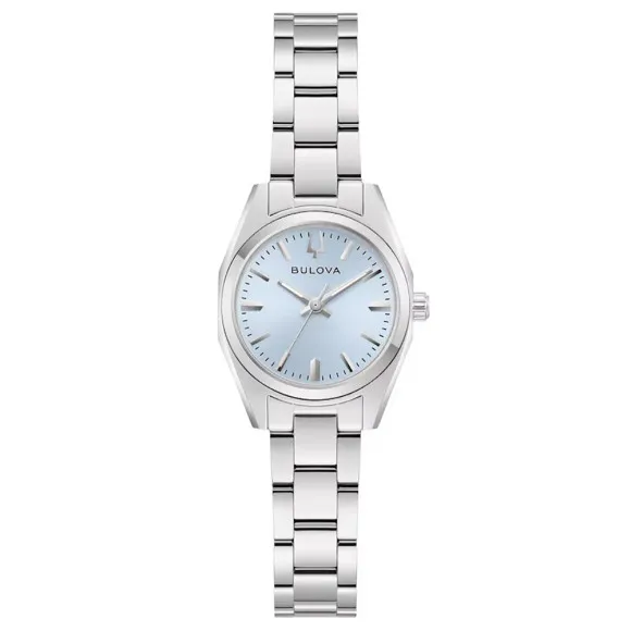 Introducing the Bulova® Analogue 'Surveyor' Women's Watch 96L345, a stunning fusion of elegance and precision. This watch is designed for the modern woman who values both style and functionality. The stainless steel case exhibits a sleek profile with a lustrous silver color, emphasizing sophistication and durability. Its round case measures 23mm in diameter and has a thin 7mm thickness, making it the perfect accessory for any occasion, whether it's a formal event or a casual outing. The captivating blue dial captures attention at first glance, displaying a unique charm that distinguishes it from other timepieces. Protected by sapphire glass, the dial not only offers a premium look but also ensures scratch resistance, keeping your watch pristine. The analogue display adds a classic touch, while the deployment clasp on the stainless steel band guarantees security and ease of use. With a band length of 19cm and a width of 10mm, it fits comfortably on any wrist. With a water resistance of up to 3 bars, the Bulova® Analogue 'Surveyor' is deigned for the dynamic lifestyle of women today. Weighing in at just 50g, it offers a lightweight feel, perfect for all-day wear. With such meticulous attention to detail, this watch seamlessly combines functionality with exquisite design, making it a must-have addition to any jewelry collection. Elevate your style and make a statement with the Bulova® Analogue 'Surveyor' Women's Watch.Shop Bulova 96L345 at Ormoda