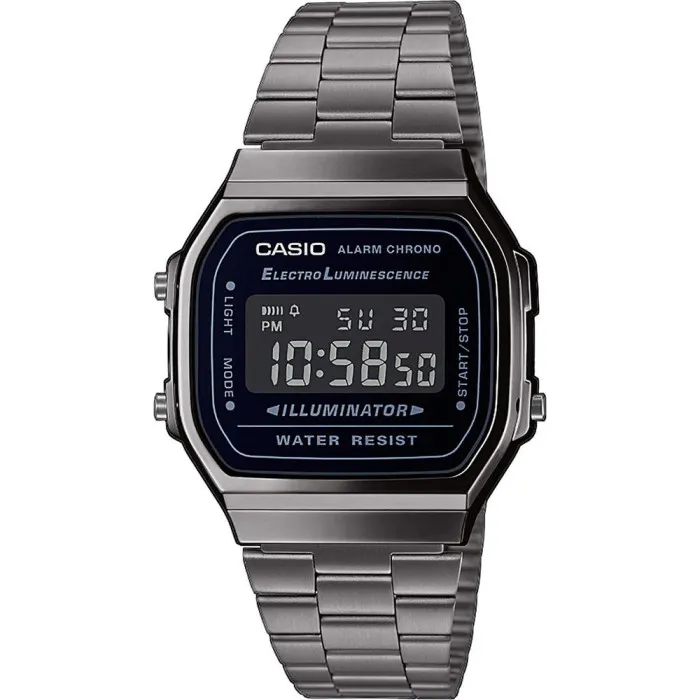 A hallmark of utility and style, the Casio® Digital 'Casio Collection' Unisex's Watch A168WEHB-1AEF embodies the digital precision and sporty aesthetics that make this timepiece ideal for everyday wear. Synced to a quartz movement, the watch ensures accurate timekeeping, with its digital display showcasing time down to seconds, with a day-date feature for added convenience. Its iconic grey square resin case, sized at a versatile 35mm, is complemented by the durable mineral glass that offers robust protection against scratches and impacts. At a comfortable 19cm in length and a 15mm width, the stainless steel band drapes elegantly around the wrist, secured with a reliable folding clasp that ensures your watch stays in place no matter where your adventures take you. The grey tone of the band matches the case, creating a cohesive and modern look that is stylishly understated. With a 3 bars water resistance, this watch can handle splashes or brief immersion in water, making it a reliable companion for your casual outings. Whether you're an athlete or just appreciate a good sporty accessory, this Casio Collection watch is equipped to meet the demands of your dynamic lifestyle.Shop Casio A168WEHB-1AEF at Ormoda
