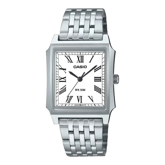 Embrace a classic elegance with the Casio® Analogue 'Casio Collection' Men's Watch MTP-B190D-7BVEF. Constructed from durable stainless steel, this timepiece boasts a sleek silver finish that provides a timeless appeal, perfect for any occasion—be it a corporate meeting or a casual outing. The rectangular case, measuring 35mm in length and 30mm in width, features a refined profile with a thickness of just 8mm, making it a lightweight and comfortable option for daily wear. The pristine white dial is not only easy to read but also exudes sophistication, protected by a mineral glass window that ensures longevity against scratches and impacts. This watch is designed with a reliable quartz movement, guaranteeing precise timekeeping.