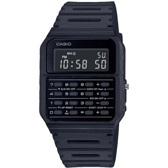 The Casio® Digital 'Collection' Men's Watch CA-53WF-1BEF is more than just a timekeeping device; it embodies a perfect blend of style and functionality that today's man demands. Designed with a sleek rectangular shape, this watch showcases a striking black dial that exudes sophistication and modernity. Each element of the watch has been carefully crafted, from the durable resin case that stands at 43mm in length and 34mm in width, to the impressively thin 7mm thickness that allows for a comfortable fit on your wrist. With a band length of 21cm and a width of 24mm, it is tailored for optimal comfort. The black plastic band complements the watch's case color beautifully, making it an ideal choice for casual wear. Powered by reliable quartz movement, this timepiece displays time digitally, ensuring precision in every moment. The watch features a day-date calendar, offering added practicality to your daily routine. With an impressive water resistance rating of 3 bars, you can wear it confidently in various settings, whether at work or enjoying leisure activities. This model excels in chic creativity with unique multifunctional features, including a calculator, dual time function, stopwatch, and alarm. This Casio watch is perfect for the modern man who values versatility and practicality without sacrificing aesthetics. Experience how this remarkable piece can enhance your look while providing indispensable tools right on your wrist.Shop Casio CA-53WF-1BEF at Ormoda