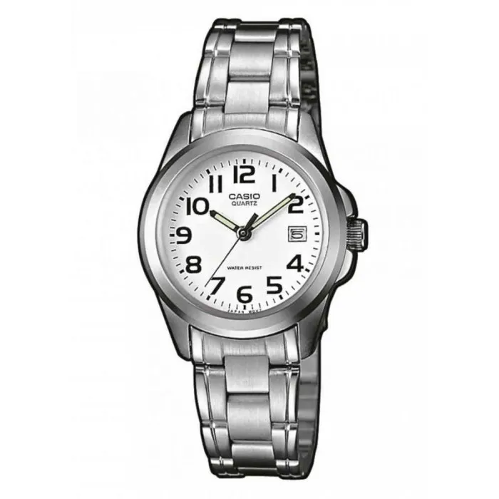 Introducing the Casio® Analogue 'Collection' Women's Watch LTP-1259PD-7BEG. This exquisite timepiece encapsulates simplistic elegance and functionality, making it perfect for the modern woman. Crafted with meticulous attention to detail, this watch is not just an accessory but a statement piece that resonates with sophistication. The soft silver tones and gentle curves of the brass case combined with a pristine white dial create a harmonious aesthetic. The 28mm round case is not too bulky, giving a comfortable yet stylish fit on the wrist, perfect for both casual outings and formal gatherings. The quartz movement ensures precision, while the resistant mineral glass safeguards the delicate dial. With a thickness of just 9mm, it seamlessly integrates into your outfit without overwhelming it. The stainless steel band, measuring 19cm in length and 12mm in width, features a fold-over clasp with a push button, guaranteeing a secure yet chic fastening. Plus, a convenient date calendar adds to its practicality. This model withstands water pressure of up to 3 bars, making it both versatile and reliable for everyday wear. Whether you are dressing up for a meeting or enjoying a casual day out, this watch is designed to complement your every look, embodying style and grace with every tick.Shop Casio LTP-1259PD-7BEG at Ormoda
