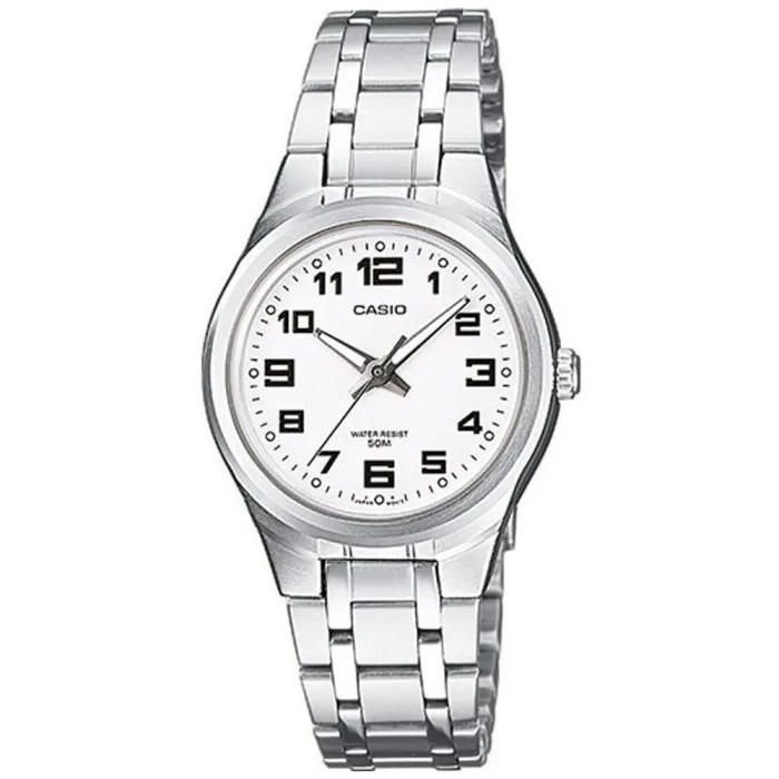 Introducing the exquisite Casio Analogue 'Collection' Women's Watch. This beautifully crafted timepiece blends elegance and functionality, making it the perfect accessory for any modern woman. With a 28mm round brass case finished in a striking silver tone, this watch is both stylish and durable. The gently curved mineral glass dial window adds a touch of sophistication, while the pristine white dial provides a timeless backdrop for the classic roman numerals. Designed with casual elegance in mind, it transitions seamlessly from day to night offerings, catering to every occasion. It is powered by a reliable quartz movement, ensuring that precision keeps you on time in today’s fast-paced world. The watch features a comfortable 19cm stainless steel band, complemented by a fold-over clasp that ensures it remains secure yet easy to wear. With a band width of 12mm, it strikes the perfect balance between dainty and bold. The watch is designed not only for beauty but also for durability, boasting a water resistance of up to 5 bars, letting you wear your watch with confidence even in more adventurous settings. Weighing just 60 grams, it offers a lightweight feel that rivals your favourite daily pieces. The Casio Analogue 'Collection' is a testament to exceptional craftsmanship, perfect for women who appreciate quality and style. Elevate your accessory game with this timeless piece, SKU LTP-1310PD-7BVEG.Shop Casio LTP-1310PD-7BVEG at Ormoda
