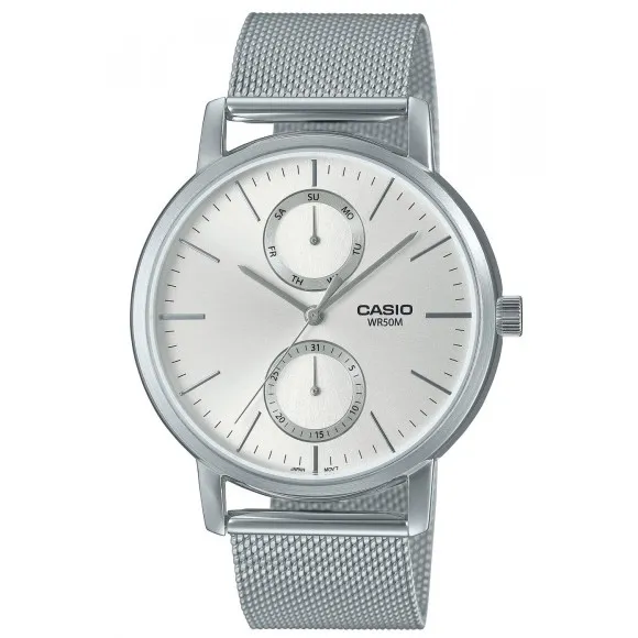 Experience the perfect blend of functionality and style with the Casio® Multi Dial 'Collection' Men's Watch MTP-B310M-7AVEF MTP-B310M-7AVEF. This watch reflects the sophistication required for today’s modern man. A prominent feature of this model is its strikingly crafted round stainless steel case. At a diameter of 40 mm and a thickness of merely 10 mm, it presents a bold yet subtle presence on the wrist. The stunning silver-colored case complements the silver dial, which is protected by durable mineral glass. This timepiece boasts a multi-dial display type, ensuring that all the essential information is just a glance away. The practical day-date calendar function enhances its usability for the busy professional. The watch is also water-resistant up to 5 bars, making it suitable for daily wear and providing peace of mind against moisture damage. The stainless steel band, extending to 21 cm with a width of 20 mm, is both robust and comfortable, secured with a fold-over clasp that ensures a snug fit. Weighing only 81 grams, it feels light on the wrist while maintaining its sturdiness. The Casio® Multi Dial 'Collection' excels as a casual wear piece that seamlessly family from day to night, making it a versatile addition to any man’s collection.Shop Casio MTP-B310M-7AVEF at Ormoda
