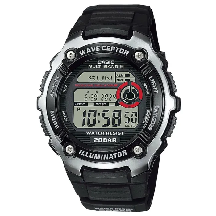 Introducing the Casio® Digital 'Collection' Men's Watch WV-200R-1AEF, your ultimate companion designed for the dynamic man. This watch is not just about telling time; it embodies precision and functionality, perfect for the modern lifestyle. Built by Casio, a brand synonymous with innovation and reliability, this model showcases a harmonious blend of style and durability. With its sleek silver stainless steel case and bold black dial, this timepiece radiates a strong presence on your wrist. A digital display ensures clarity in every situation, complemented by an array of features that cater to the active individual. Whether you are working out, traveling, or simply managing your day-to-day, this watch meets your needs with remarkable efficiency. Always connected, its radio-controlled functionality allows for accurate timekeeping across multiple time zones, while the waterproof design up to 20 bars opens opportunities for aquatic adventures. Each detail, from the sturdy plastic band to the precise quartz movement, is crafted with care to guarantee reliability and longevity. With a case diameter of 45mm and a thickness of 14mm, it boasts an impressive but comfortable fit.Shop Casio WV-200R-1AEF at Ormoda