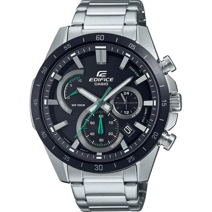 The Casio® Chronograph 'Edifice' Men's Watch EFR-573DB-1AVUEF blends performance and elegance effortlessly. Designed for the discerning man, this timepiece showcases a striking black dial that features a chic chronograph display, ensuring that you are always in control of your time. The stainless steel case, with a diameter of 44mm and a thickness of 11mm, not only provides durability but also creates a commanding presence on your wrist. Complemented by a mineral glass window, this watch is built to withstand daily wear while maintaining a polished look. With a precision quartz movement, this watch guarantees reliability in keeping time, making it an excellent addition to your daily routine or special occasions. The bezel, adorned with numbers, enhances its sporty aesthetic while the silver stainless steel band adds a touch of refinement. Measuring 21cm in length and 21mm in width, the band is designed for comfort and can easily be secured with a fold-over with push-button clasp. Meanwhile, the water resistance of 10 bars means you can embrace any adventure without worry. For those who appreciate practicality, the built-in date calendar is a feature that ensures you stay on top of your schedule. Whether at work or play, this watch serves as a reliable companion, seamlessly transitioning from office attire to casual wear. The thoughtful design elements, such as the lug to lug height of 51mm, provide a perfect fit that accentuates the wrist, making this Casio® timepiece a must-have for the modern man.Shop Casio EFR-573DB-1AVUEF at Ormoda