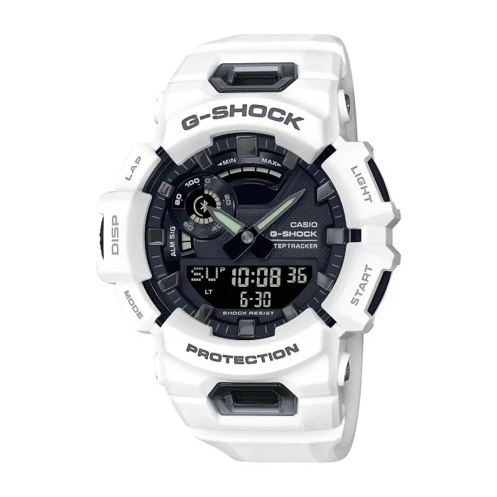 The Casio Analogue-digital 'G-shock' Men's Watch GBA-900-7AER is a pinnacle of innovation and rugged design, perfectly suited for the modern man who thrives on adventure. Crafted by Casio, a brand renowned for its cutting-edge technology and precision, this timepiece embodies strength and versatility. The G-shock series is celebrated for its resilience, making it an essential accessory for those who lead an active lifestyle. This model merges military-inspired aesthetics with contemporary features, ensuring you not only stay on time but do so in style. With a striking white resin case measuring 46mm in diameter and 15mm in thickness, this watch boasts a bold round design that appeals to the adventurous spirit. The black dial, protected by durable mineral glass, presents clarity and sophistication. Features such as Bluetooth connectivity and a comprehensive set of functions including a stopwatch, countdown timer, alarm, and light make this piece not just a watch but a multifunctional companion. The rugged white band is designed for comfort and durability, measuring 21cm in length and 26mm in width. Secured by a reliable buckle clasp, it fits snugly against the wrist while maintaining a lightweight feel of just 62 grams. Additionally, with a water resistance rating of 20 bars, this timepiece is ready to tackle any environment—from deep waters to rugged terrains. The day-date calendar adds practical value for daily wear, ensuring you stay organized while looking effortlessly stylish. The Casio G-shock GBA-900-7AER is more than just a watch; it’s an embodiment of precision, durability, and cutting-edge design.Shop Casio GBA-900-7AER at Ormoda