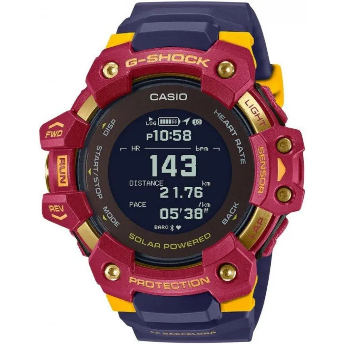 Introducing the Casio® Digital 'G-shock' Men's Watch GBD-H1000BAR-4ER. This exceptional timepiece represents the pinnacle of performance and style, specifically crafted for the modern man. As a proud member of the G-Shock family, this watch is built to withstand the demands of an active lifestyle, boasting both rugged durability and sleek aesthetics. The bold red resin case not only stands out visually but also serves as a fortress of protection, ensuring that this watch can handle extreme conditions with ease. With a case diameter of 50mm and a thickness of 18mm, it commands presence on the wrist, while the round shape adds a classic touch to its sporty design. The striking black dial, protected by mineral glass, features digital display technology, providing effortless readability. Impressively equipped with advanced features such as GPS function, heart rate monitor, and stopwatch capabilities, this watch is the ultimate companion for any fitness enthusiast or adventurer. The multifunctional design is complemented by a multicolor plastic band that measures 21cm in length and 26mm in width, designed for comfort and a secure fit on every wrist. It is also solar powered, making it an eco-conscious choice that ensures you never run out of time. With a rating of 20 bars for water resistance, this timepiece is ready for any challenge that comes your way, embodying the spirit of exploration and resilience.Shop Casio GBD-H1000BAR-4ER at Ormoda