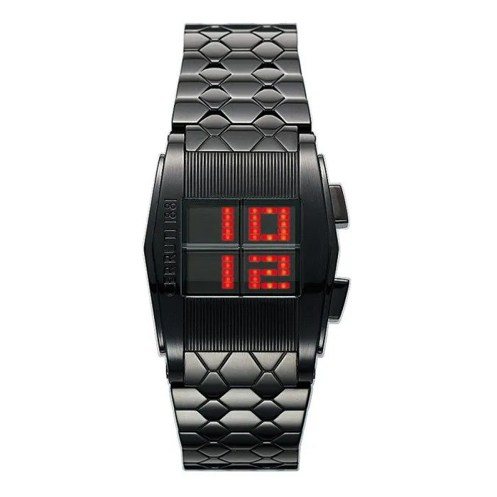 The cerruti ct067102001 is fitted with a quartz movement and a 29mm stainless steel case. The lcd dial is housed by a black coloured case and a black stainless steel strap. The watch is delivered in an original box and has a warranty of 2 years.