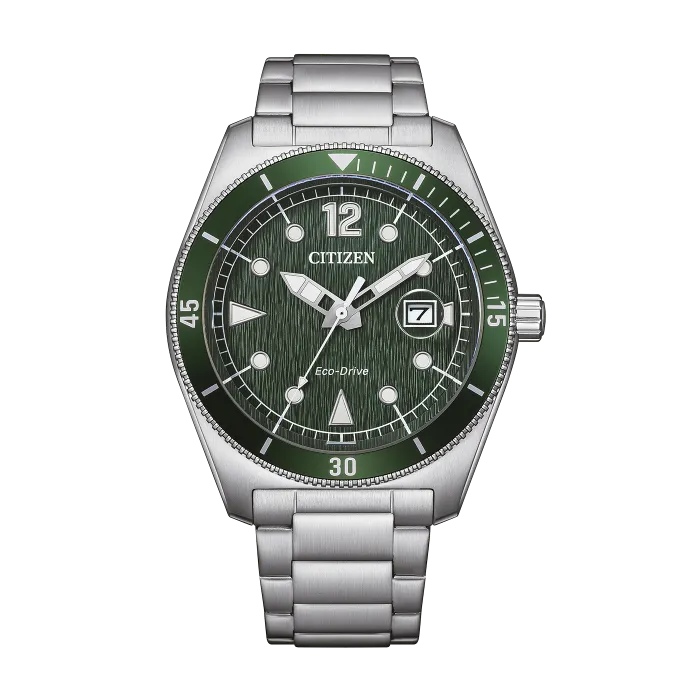 Experience the seamless blend of style and functionality with the Citizen® Analogue Men's Watch AW1880-55X. This outstanding timepiece features a captivating green dial, expertly framed by a radiant silver stainless steel case measuring 43mm in diameter and 12mm in thickness. The watch’s Eco-Drive movement ensures unparalleled accuracy without the need for battery changes, utilizing both sunlight and artificial light to power it. The striking round case is complemented by a robust mineral glass dial window, offering both durability and clarity. Whether you're dressed for a formal occasion or enjoying a casual day out, the Citizen® watch stands out with its elegant silver band, measuring 21cm in length and 21mm in width. The fold-over clasp with push button ensures a secure fit, making it the perfect companion for any adventure. Designed with practicality in mind, this watch is water-resistant up to 10 bars, allowing it to withstand splashes and brief immersion, so you can wear it with confidence, regardless of the situation. The date calendar function adds further convenience, ensuring you’re always aware of the day at a glance. Wrapping around your wrist, the weight of 153 grams feels substantial yet comfortable, making this timepiece a true statement of craftsmanship and style.Shop Citizen AW1880-55X at Ormoda