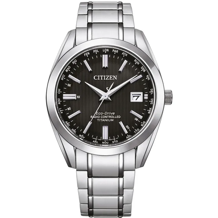 Citizen® Analogue Men's Watch CB0260-81E embodies the spirit of adventure and functionality with its expertly crafted design and advanced technology. This remarkable timepiece is not just a watch; it's a statement of style and precision, tailored for the discerning gentleman who values both form and function. The black dial contrasts beautifully with the silver titanium case and band, offering a sense of luxurious elegance. At a diameter of 40mm and a thickness of just 10mm, it boasts a sleek profile that is perfect for both formal and casual occasions. Powered by Eco-Drive technology, this watch is eco-friendly and eliminates the need for battery changes. The precision is further heightened with radio-controlled movement, ensuring that you are always in sync with the correct time. Functional features such as a stopwatch, world time, and luminous hands make it not just aesthetically appealing but also incredibly useful. The sapphire glass dial window provides protection against scratches, ensuring that this timepiece retains its classic look over time. With a water resistance of up to 10 bars, this watch is suitable for various activities, whether you're swimming or just caught in the rain. Measuring 21cm in length and 19mm in width, the titanium band also features a secure fold-over clasp with a push button, allowing you to wear it with confidence. The lug-to-lug height is 47mm, creating a comfortable fit on the wrist. Citizen’s heritage of craftsmanship assures you of its quality and durability. This is not just a watch; it's a tool for life, an accessory that enhances your daily wardrobe, and a reflection of your sophisticated taste.Shop Citizen CB0260-81E at Ormoda
