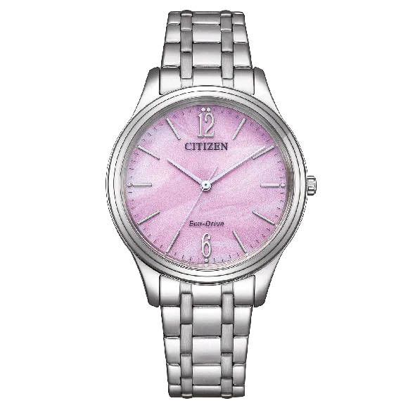 The Citizen® Analogue 'Elegance' Women's Watch EM0411-71X embodies timeless sophistication and modern functionality. This exquisite timepiece features a round case crafted from durable stainless steel, offering both strength and elegance. Measuring 34mm in diameter and just 7mm in thickness, it presents a sleek profile that perfectly suits any wrist. The stunning pink dial radiates a delicate charm, protected by crystal glass to maintain its clarity and shine over time. At the core of this watch is the remarkable Eco-Drive movement, utilizing light to maintain its power, ensuring that you never have to deal with battery replacements again. A meticulously designed stainless steel band in a matching silver tone complements the case beautifully, measuring 19cm in length and 15mm in width, with a fold-over clasp featuring a push button for secure and easy wear. With a water resistance of up to 5 bars, this watch is not only a fashion statement but also a functional accessory, perfect for the modern woman who appreciates both style and practicality. The Citizen® Analogue 'Elegance' is an ideal choice for daily wear or special occasions, promising to elevate your ensemble with its beautifully crafted design and exceptional reliability.