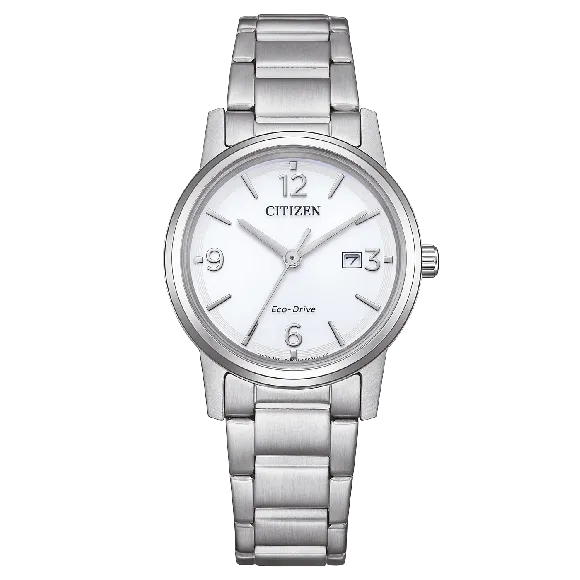 The Citizen® Analogue Women's Watch EW2720-57A is a stunning testament to elegance and functionality, tailored specifically for the modern woman. This exquisite timepiece showcases a refined round case made of stainless steel, with a lustrous silver finish that radiates sophistication. Measuring 30mm in diameter and only 7mm thick, it adds a delicate touch to your wrist while making a bold statement. The pristine white dial, protected by crystal glass, features vivid hour markers that enhance visibility, ensuring you stay punctual with style. This watch is not just about looks; the Eco-Drive movement harnesses light energy, meaning you can wear it without worry about battery changes. Whether in natural or artificial light, this watch is always ready to go. The date calendar feature offers added convenience, making it perfect for your dynamic lifestyle. The robust yet dainty stainless steel band complements the watch case and measures 19cm in length, ensuring comfort throughout your daily activities. An easy-to-use fold-over clasp with a push button makes putting on and taking off a breeze, making this watch an ideal accessory for any occasion, from casual gatherings to elegant soirées. With a water resistance rating of 3 bars, it can handle splashes and brief immersions, giving you peace of mind wherever your adventures take you. In the Citizen® Analogue Women's Watch EW2720-57A, you find a blend of style, sustainability, and practicality, perfect for the contemporary woman seeking to harmonize elegance with functionality.