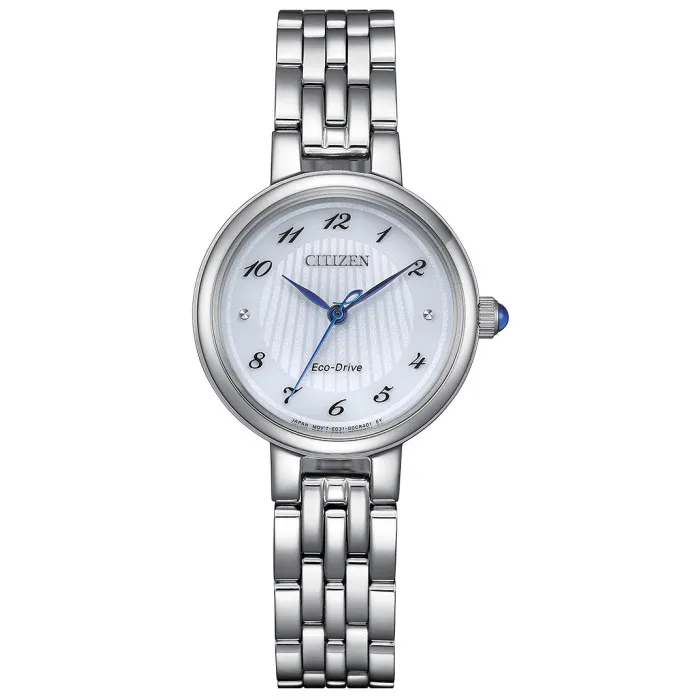 Introducing the Citizen® Analogue 'L' Women's Watch EM0990-81A, a stunning jewelry piece that beautifully blends elegance with functionality. This watch, crafted with the finest attention to detail, boasts a sleek round stainless steel case that measures 27mm in diameter and a stylish thickness of just 7mm. Perfectly designed for the modern woman, it demonstrates that sophistication can indeed coincide with practicality. The case's silver tone radiates a timeless charm while encapsulating cutting-edge technology through its Eco-Drive movement, allowing this watch to harness light for power, ensuring you never lose track of time.Shop Citizen EM0990-81A at Ormoda