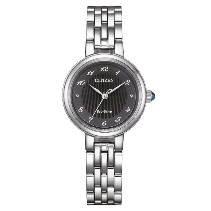 Introducing the stunning Citizen Analogue 'L' Women's Watch, EM0990-81E, a beautiful expression of style and functionality. Crafted for the modern woman who values both elegance and precision, this exquisite timepiece showcases Citizen's commitment to excellence. With a rich history dating back to 1918, Citizen has become synonymous with innovation and quality, pioneering eco-friendly watch technology. Their Eco-Drive movement not only delivers accurate timekeeping but also emphasizes sustainability by using light as its power source. The design of this watch seamlessly combines sophistication with a timeless allure, making it a perfect accessory for any occasion. The Citizen Analogue 'L' is designed with an exquisite round stainless steel case that measures 27mm in diameter and is only 7mm thick, embodying a sleek aesthetic that complements the wrist beautifully. The black dial is protected by durable sapphire glass, ensuring clarity and resistance to scratches. This striking contrast between the black face and silver case and band creates a captivating visual appeal, effortlessly enhancing any outfit. The watch's silver stainless steel band, with a length of 19cm and a width of 12mm, is comfortable against the skin, secured with a reliable deployment clasp that adds to its chic design. Water-resistant up to 5 bars, this watch is designed for the active woman. Whether you are at the office or enjoying a night out, the Citizen Analogue 'L' not only serves as a functional timepiece but also as a statement of style. Weighing just 62 grams, it feels light yet sturdy on the wrist, making it an excellent choice for daily wear. With this watch, you not only invest in an accessory but a piece of craftsmanship that reflects class and sophistication.Shop Citizen EM0990-81E at Ormoda