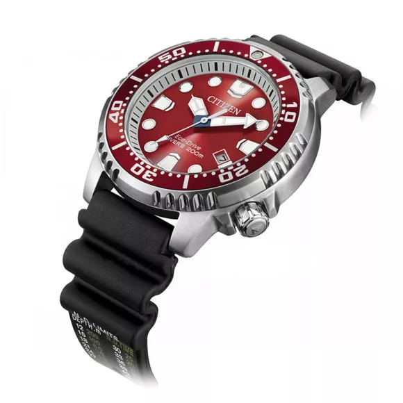 The Citizen® Analogue 'Promaster Marine' Men's Watch BN0159-15X is the epitome of reliability and style, crafted for those who carve their own path in the underwater world. Built on the foundation of Citizen's long-standing dedication to accuracy and innovation, this exceptional timepiece stands out with its dynamic features tailored for adventurers and water sports enthusiasts alike. With a case diameter of 43mm, the round stainless-steel casing not only articulates strength but also promises durability even in the harshest marine environments. Whether diving deep below or enjoying a seaside gathering, you can trust it to keep perfect time while showcasing your unique style. The rich red dial exudes a sense of adrenaline, complemented by a mineral glass window ensuring clarity even under pressure. You can enjoy the functionality of a turnable bezel, allowing you to accurately measure your dive times. The rubber band not only contributes to the watch's overall sporty aesthetic but also provides a soft and tough fit with a length of 21cm and width of 20mm, finished with a secure buckle clasp. For those who appreciate utility, the date feature adds another layer of practicality to this stylish companion. Boasting a water resistance of up to 20 bars, this timepiece ensures that whether you are an aquatic adventurer or a casual wearer, it withstands the trials of your lifestyle. The Eco-Drive movement is an innovation that harnesses light, ensuring that you never have to worry about changing batteries. In the realm of diving watches, the Citizen® 'Promaster Marine' distinguishes itself as a beacon of performance and style, making every moment spent underwater a cherished adventure.Shop Citizen BN0159-15X at Ormoda