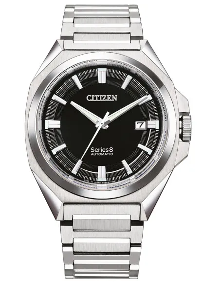Introducing the Citizen® Analogue 'Series 8' Men's Watch NB6010-81E, a refined masterpiece that embodies elegance and performance. This watch features a sleek black dial, housed within a perfectly polished silver stainless steel case that measures 40mm in diameter. The round case design ensures that this timepiece is not just functional but also a statement of sophistication. It is crafted with attention to detail, making it perfect for formal occasions or daily wear. Powered by automatic movement, the Citizen Series 8 guarantees precision and reliability, effortlessly merging style and functionality. The sapphire glass window protects the dial from scratches and enhances visibility, presenting the time in a classic analogue format. The watch comes with a calendar feature, allowing you to keep track of your important dates easily. Its fold-over clasp with a push-button ensures a secure fit and easy wearability, making it a practical choice for the modern man. The silver stainless steel band, measuring 21mm in width and 21cm in length, complements the case beautifully, offering durability alongside comfort. With a thickness of only 10mm, this watch sits comfortably on the wrist, making it suitable for all-day wear. Water resistant up to 10 bars, it is designed to withstand daily activities while maintaining its luxurious appearance. The Citizen® Analogue 'Series 8' Men's Watch is more than just a timekeeping tool; it is an emblem of personal style and a testament to the Citizen legacy of quality and innovation. Shop Citizen NB6010-81E at Ormoda