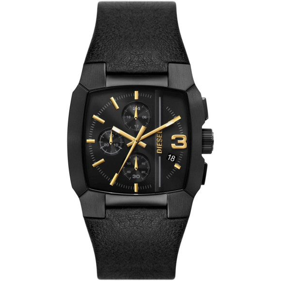 Introducing the Diesel® Chronograph 'Cliffhanger' Men's Watch DZ4645, a striking blend of functionality and rugged sophistication. This casual timepiece is designed for the modern man who appreciates both style and practicality. The bold square case, crafted from durable stainless steel, showcases a sleek black finish that is both eye-catching and versatile. The watch measures a comfortable 40mm in diameter, making it perfect for everyday wear without sacrificing a bold presence on the wrist. Its modern aesthetic is enhanced by the deep black dial, protected by mineral glass that adds a layer of resilience against daily wear and tear. This watch doesn't just tell time; it also features a chronograph display that adds an element of sporty sophistication. With a water resistance of up to 5 bars, you can confidently wear it for any occasion, whether you are in the office or out for a weekend adventure. The Diesel 'Cliffhanger' truly stands out with its genuine leather band, measuring 21cm in length and 28mm in width. The stylish black band complements the watch case beautifully and fastens securely with a reliable buckle clasp. The addition of a date calendar function enhances practicality, ensuring you stay organized while looking great. Weighing in at a mere 86 grams, it is lightweight yet substantial, providing the ideal balance for daily wear, making it a remarkable companion for any man who values both style and function.Shop Diesel DZ4645 at Ormoda