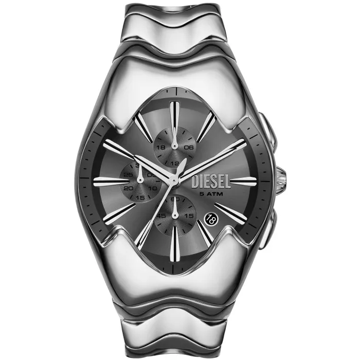 Introducing the Diesel® Chronograph 'Mercurial' Men's Watch DZ4683, a piece that truly embodies the rugged elegance of modern watchmaking. Designed for the man who knows what he wants, this watch seamlessly blends functionality with style. Diesel, a brand renowned for its bold and innovative approach, crafts timepieces that are not just accessories, but vital expressions of personal style. Founded in 1978, Diesel has built a reputation for pushing boundaries and celebrating individuality. The 'Mercurial' stands as a testament to this spirit, offering a robust yet sophisticated design that catches the eye and demands attention. The watch features a striking grey dial encased in a durable stainless steel case, measuring 44mm in diameter and 12mm in thickness. This combination provides both comfort and sturdiness, perfectly suited for daily wear or special occasions. The chronograph display adds a functional aspect, allowing you to effortlessly keep track of time during both work and leisure. With a mineral glass window, this timepiece is designed to resist scratches and maintain clarity. The silver stainless steel band, intricately crafted and measuring 24mm in width, complements the watch’s overall aesthetics while providing a secure fit with a fold-over clasp. Water-resistant up to 5 bars, this watch is ready to accompany you on all your ventures, making it the ideal choice for the dynamic man on the move.Shop Diesel DZ4683 at Ormoda