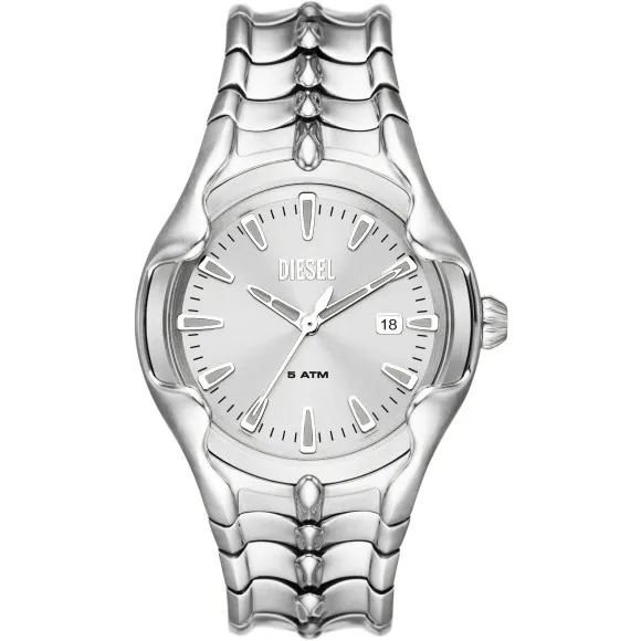 Introducing the Diesel® Analogue 'Vert' Men's Watch DZ2185, where contemporary style meets robust craftsmanship. Diesel is a brand that resonates with those who appreciate individuality and boldness in their accessories. Characterized by innovative designs, Diesel is synonymous with unrefined elegance and daring styles. This watch embodies the brand's philosophy, combining function and fashion seamlessly for the discerning gentleman. From the streets to the boardroom, Diesel watches are designed to make a statement, showcasing a fusion of exceptional quality and avant-garde design elements that elevate your wrist game. The Diesel® Analogue 'Vert' Men's Watch DZ2185 features a sleek silver stainless steel case, measuring 44mm in diameter and 11mm in thickness. This round watch is perfectly suited for casual settings while retaining a luxurious aura. The silver dial, protected by mineral glass, adds an element of sophistication. With a quartz movement at its core, the 'Vert' promises precise timekeeping, making it your reliable companion for everyday adventures. The watch is equipped with a sturdy stainless steel band, offering both comfort and durability. Measuring 21cm in length and 24mm in width, it ensures a perfect fit on most wrists. The fold-over clasp with a push-button mechanism keeps the watch secure and easy to wear. Designed with an ATOM rating of 5 bars, it's suitable for a splash of water without compromising its integrity. Additionally, the 'Vert' includes a practical date functionality, enhancing its usability for the modern man. The overall weight of the watch is a comfortable 176 grams, making it an ideal choice for all-day wear. Enjoy the elegance and performance this timepiece delivers, encapsulating Diesel's ethos of striking design and quality craftsmanship.