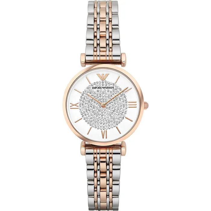 Step into elegance with the Emporio Armani Analogue 'Gianni T-bar' Women's Watch AR1926, a stunning masterpiece designed for the sophisticated woman. This dress watch is a perfect blend of style and functionality. Crafted from high-quality stainless steel, the rose gold case features a delightful round shape, measuring 32mm in diameter and 8mm in thickness. The white dial, protected by resilient mineral glass, adds a touch of purity and clarity, making it easy to read at a glance. It’s complemented by a multi-coloured stainless steel band that measures 19cm in length and 13mm in width, beautifully showcasing its luxury appeal. With a delicate weight of just 72 grams, this watch is not only stylish but also comfortable to wear throughout the day. Its deployment clasp ensures a secure fit, which is essential for busy lifestyles. The watch offers a water resistance of up to 3 bars, allowing it to withstand unexpected splashes while maintaining its charm. The precise quartz movement guarantees that you arrive on time, every time, making it a reliable companion whether you're in a business meeting or enjoying a night out. This timepiece is more than just a watch; it’s a statement of elegance and graceful style. Perfect for the modern woman who appreciates both aesthetics and precision, the Emporio Armani Analogue 'Gianni T-bar' remains a crucial element in your accessory collection, elevating any outfit to new heights of sophistication.Shop Emporio Armani AR1926 at Ormoda