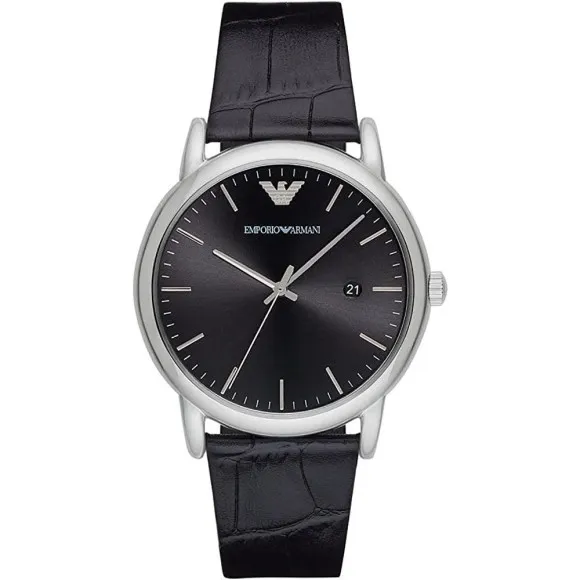 Introducing the Emporio Armani® Analogue 'Luigi' Men's Watch AR2500, a superb representation of refined elegance and contemporary style. This timepiece embodies the renowned craftsmanship and innovative design philosophy of Emporio Armani, a brand synonymous with luxury and sophistication. Specializing in creating stylish yet practical accessories, Emporio Armani has captivated the hearts of men seeking to elevate their wardrobe with versatile pieces. With a focus on quality and attention to detail, each watch is designed to ensure you stand out, whether at a formal gathering or a casual outing. The 'Luigi' model encapsulates the essence of Italian flair combined with modern functionality, representing both tradition and trend in one stunning piece. The Emporio Armani® Analogue 'Luigi' Men's Watch AR2500 features a striking black dial that perfectly contrasts with its lustrous silver case, designed from durable stainless steel. The 42mm round case sits comfortably on the wrist, complemented by a slim profile of just 9mm in thickness. This watch embraces a smart dress style, making it an ideal choice for any elegant occasion. A black leather band enhances its sophisticated appearance, measuring 21mm in width and providing a snug fit for a variety of wrist sizes. Equipped with a precise quartz movement, this watch guarantees reliable timekeeping, ensuring you are always punctual. The watch also features a date calendar function, which adds practical utility to its stylish design. A mineral glass dial window protects the sleek face, ensuring durability against daily wear. The 'Luigi' boasts a water resistance of up to 5 bars, making it suitable for everyday use without compromising its aesthetic appeal. Weighing a mere 50 grams, it offers lightness and comfort, allowing you to wear it effortlessly throughout the day. With a thoughtful design embracing both modern aesthetics and classic elements, this timepiece is a perfect addition to any man’s accessory collection.