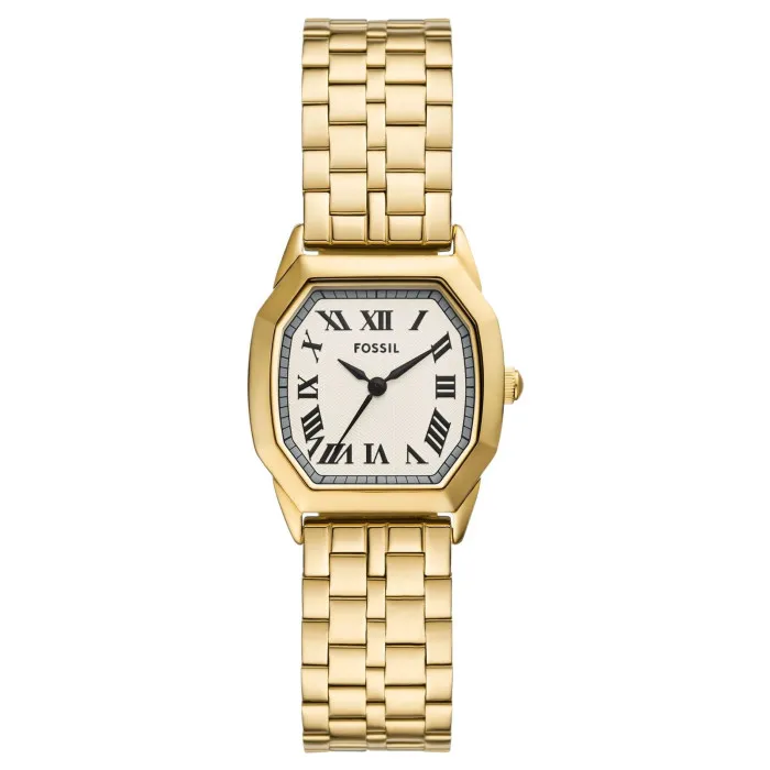 Introducing the Fossil® Analogue 'Harlow' Women's Watch ES5361, a stunning timepiece designed for the modern woman who appreciates elegance blended with functionality. This watch is a reflection of Fossil's commitment to quality and style. Renowned for their creativity and passion, Fossil has expertly crafted each watch collection to be not only a piece of art but also a reliable companion for everyday life. With a history steeped in watchmaking and design innovation, Fossil continues to inspire women around the world to express their individuality through their timeless accessories. The Harlow is a beautiful embodiment of sophisticated style. Crafted with a stainless steel case that measures 28mm in length and 27mm in width, the watch showcases an exquisite gold tone that adds a touch of luxury to your wrist. The tonneau case style, measuring only 8mm in thickness, sits elegantly against the skin, making it a perfect accessory for both casual and formal occasions. The beige dial, protected by mineral glass, not only enhances readability but also contrasts fabulously with the golden case and band. What makes the Harlow truly special is its quartz movement, ensuring precise timekeeping that busy women can rely on. The watch features a gold stainless steel band that is 19cm long and 16mm wide, adorned with a fold-over clasp that guarantees a secure fit. Plus, with an impressive water resistance of up to 5 bars, this timepiece can accompany you to the pool or on a rainy day without a second thought. Every detail of this watch has been thoughtfully designed, making it a beautiful addition to any jewelry collection, embodying both beauty and practicality in one elegant silhouette.Shop Fossil ES5361 at Ormoda