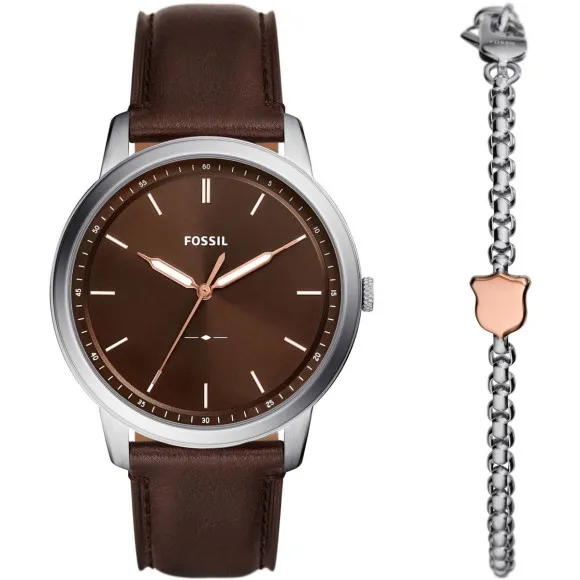 Since its inception, Fossil has been committed to creating timepieces that echo the importance of tradition while embracing modernity. The brand draws inspiration from vintage designs, art, and culture, blending these influences to create bold yet wearable pieces. Known for their quality materials and intricate detailing, Fossil watches cater to individuals with a strong sense of style. Each watch is crafted with precision, ensuring not only aesthetic appeal but also reliability and durability. Fossil’s dedication to innovation is evident in every creation, where each timepiece tells a unique story of experiences and travels. As a brand that encourages self-expression, Fossil watches are not just about telling time; they embody a lifestyle that resonates with the adventurous spirit of modern men. With an emphasis on both form and function, Fossil continually pushes the boundaries of design, promising that their pieces will always remain relevant and stylish through the ages.Introducing Fossil® Analogue 'Minimalist' Men's Watch FS6019SET