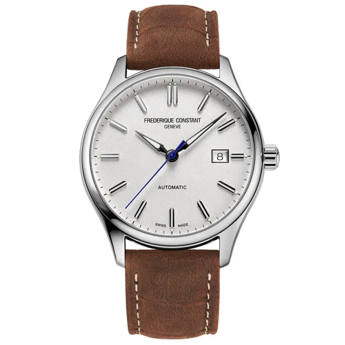 The Frederique Constant® Analogue 'Index Automatic' Men's Watch FC-303NS5B6 embodies the essence of refined elegance that defines the Frederique Constant brand. Launched with a vision to blend tradition and innovation, the Geneva-based watchmaker has made a significant mark in the world of luxury timepieces since its establishment. This exquisite timepiece is meticulously crafted to accommodate the modern man's lifestyle while also retaining a classic aesthetic that enhances any dress outfit. The automatic movement exemplifies precision engineering, reflecting the brand’s commitment to quality and timelessness. This stunning dress watch features a gracefully sleek stainless steel case, measuring 40mm in diameter and just 11mm thick, making it the perfect size for a sophisticated look without feeling bulky on the wrist. The elegantly styled round case is accompanied by a resplendent white dial, protected by sapphire glass that ensures durability and clarity, allowing the distinguished markers and hands to shine against the background. The watch also includes a convenient date calendar, a testament to its practicality without sacrificing style. At the core of its design is a sumptuous brown leather band, exuding a warm, luxurious feel, and ensuring comfort with its 21cm length, which is adjustable to fit most wrists. The watch is secured with a classic buckle clasp, adding to its refined character. With a water-resistance of 5 bars, this exceptional timepiece is versatile enough for various occasions, whether you’re attending a formal function or enjoying a casual gathering. From its robust construction to its elegant aesthetics, the Frederique Constant® Analogue 'Index Automatic' is not just a watch; it's a statement of style and sophistication that every discerning gentleman deserves. Shop Frederique Constant FC-303NS5B6 at Ormoda