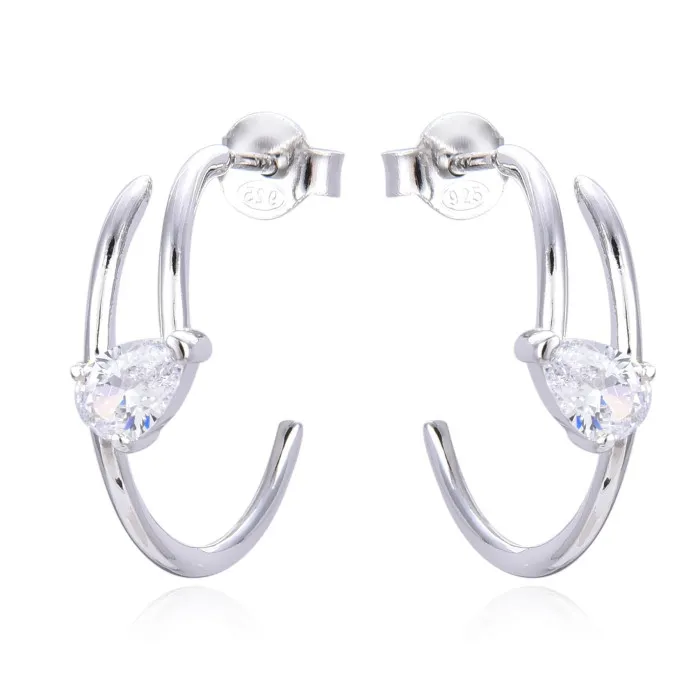 Introducing the Gena.paris® 'Shine' Women's Sterling Silver Hoop Earrings, a stunning accessory that embodies elegance and sophistication. These beautiful earrings feature a classic hoop design that gracefully enhances any outfit, whether it's a casual brunch or an evening soiree. Crafted from high-quality 925 sterling silver, these earrings not only shine but are also durable and hypoallergenic, making them perfect for all-day wear. Each earring is adorned with two exquisite zirconium stones in a pear shape, radiating a brilliant white sparkle that captures attention and reflects your unique style. Measuring 2 cm in height and 0.7 cm in width, the earrings are lightweight at just 2.60 grams, ensuring comfort along with style. The secure butterfly closure ensures that these stunning pieces stay in place, allowing you to move freely without worry. With their timeless design and versatile color, they are a marvelous addition to any jewelry collection. Pair them with coordinating pieces or let them shine on their own to add a touch of glamour to your look. The Gena.paris brand is synonymous with high-quality craftsmanship and a commitment to creating timeless jewelry. Each piece is designed with the modern woman in mind, combining contemporary style with classic elegance. The 'Shine' earrings are perfect for those looking to express their individuality while enjoying the luxury of fine materials and expert design.