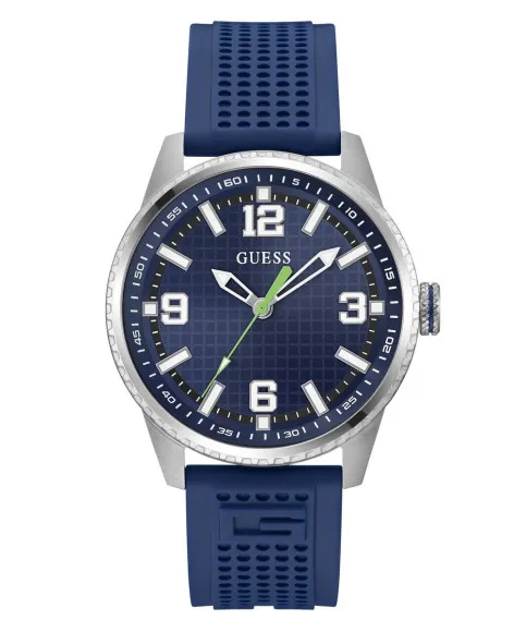 Introducing the Guess® Analogue 'Varsity G' Men's Watch GW0890G1, an epitome of style and functionality designed for the modern man. With its captivating blue dial and sturdy stainless-steel case, this timepiece exudes a confident charm that appeals to those who appreciate quality and elegance in their everyday accessories. The brand Guess, renowned for its innovative designs and commitment to precision, has consistently delivered outstanding timepieces that align with contemporary trends, making it a favorite among style-savvy individuals. Since its inception, Guess has been dedicated to pushing boundaries through innovation and bold aesthetics, resulting in watches that are not just timekeepers but fashion statements. This men's watch embodies the essence of the Guess philosophy—uncompromising quality combined with striking design. The Guess® Analogue 'Varsity G' Men's Watch is crafted with a quartz movement, ensuring precise timekeeping alongside unbeatable reliability. This timepiece features a robust round case, measuring 42mm in diameter and 9mm in thickness, providing a substantial presence on the wrist while remaining comfortable for daily wear. The mineral glass dial window not only adds durability but also protects the striking blue dial, which is complemented by a classy blue silicone band. Measuring 21cm in length and 21mm in width, the band enhances the watch's sporty appeal. With an impressive water resistance of 5 ATM, this watch is designed to withstand splashes and brief immersion in water. The traditional buckle clasp ensures a secure fit, allowing its wearer to embrace both their active lifestyle and sophisticated occasions without hesitation. Whether you are heading to the office or enjoying a weekend adventure, the Guess® Analogue 'Varsity G' Men's Watch GW0890G1 is the perfect companion, effortlessly adapting to any setting. Shop Guess GW0890G1 at Ormoda