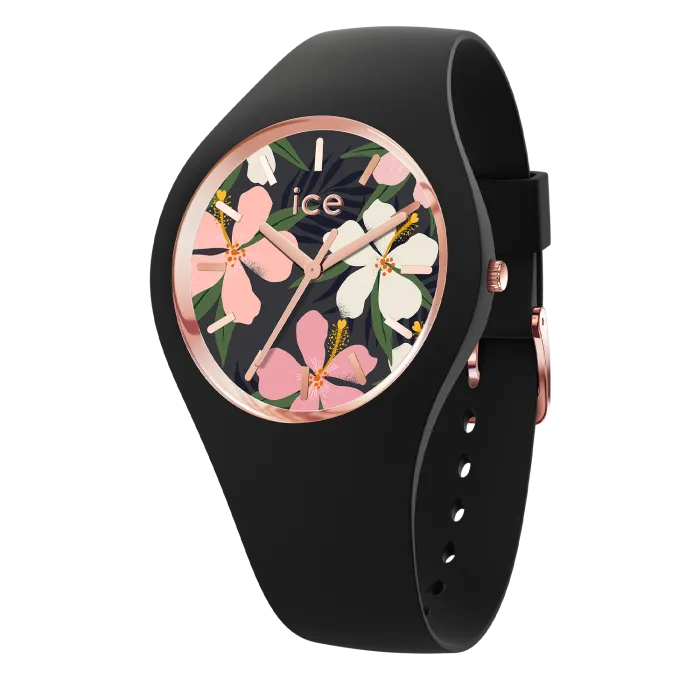 Indulge in the enchanting allure of the Ice Watch brand, known for its vibrant designs and quality craftsmanship that resonate perfectly with Women who love to express their individuality. The brand, founded with a vision to create stylish yet functional timepieces, focuses on playful elegance and on-trend aesthetics. With its commitment to making watches that are not just instruments of timekeeping but also personal statements, Ice Watch bridges fashion and functionality seamlessly. The innovative designs often feature bold colors and playful patterns, embodying a carefree spirit suitable for any occasion. As you explore their collections, you’ll discover a sense of joy brought to life through sophisticated craftsmanship. Presenting the Ice Watch® Analogue 'Ice Flower - China Rose' Women's Watch 020510, a perfect fusion of elegance and casual charm. This exquisite watch captivates with its unique multicolored dial that plays with hues, celebrating the beauty of a blossoming flower. The round watch case, constructed from durable silicone, showcases a striking black color that harmonizes effortlessly with the delicate floral design. Measuring 34mm in diameter and just 8mm thick, this timepiece is lightweight and fits comfortably on your wrist, making it suitable for everyday wear. The 19cm silicone band ensures a snug fit, while the buckle clasp secures it gracefully. The watch is designed to withstand everyday activities with a water resistance of up to 10 bars, providing peace of mind whether you're out for a casual lunch or enjoying a day at the beach. The mineral glass dial window adds an extra layer of protection, ensuring the vibrant colors stay radiant for years to come. With quartz movement, you can rely on precise timekeeping, allowing you to focus on what truly matters in your day.