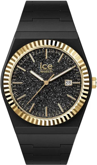 The Ice Watch® Analogue 'Ice Power - Pw1 - Black Glitter' Women's Watch 024771 features a charming aesthetic that combines sophistication with contemporary design. The watch is crafted for the modern woman who craves both style and functionality. With a round black resin case measuring 36mm in diameter and a thickness of 11mm, this timepiece exudes simplicity while maintaining elegance. Its striking black glitter dial is protected by sturdy sapphire glass, ensuring durability and a clear view of the time. Dive into the details that set this watch apart. The elegant quartz movement guarantees precise timekeeping, while the watch boasts a date calendar feature for added convenience. The comfortable silicone band is not just stylish but also practical, coming in a sleek black color that seamlessly complements any outfit. Crafted to fit the wrist perfectly, the band measures 19cm in length and 18mm in width. The buckle clasp provides an easy yet secure fastening. This watch is rated to 10 bars of water resistance, making it an excellent choice for daily wear, whether you're caught in the rain or sipping a latte at your favorite café. The lug-to-lug height of 41mm ensures a comfortable fit on your wrist, allowing you to move gracefully through your day. With a weight of just 42 grams, this watch remains light and comfortable, making it suitable for prolonged wear. Embrace a blend of function and feminine flair with the Ice Power series - a statement piece for all occasions.Shop Ice Watch 024771 at Ormoda