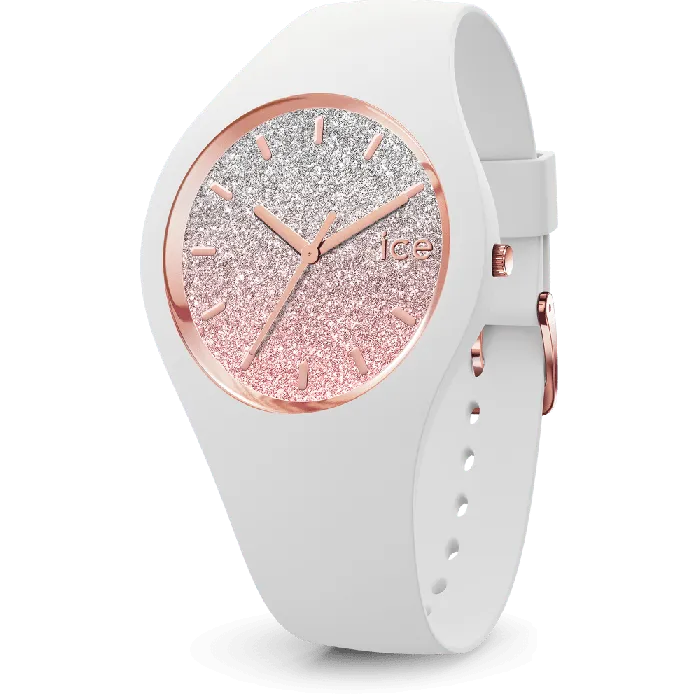The Ice Watch® Analogue 'Lo' Women's Watch (Small) 013427 is a stunning piece that effortlessly combines elegance and functionality. Designed for the modern woman who embraces style and timeliness, this watch is a must-have accessory for any outfit. Its round silicone case in a pristine white tone measures 34mm in diameter, providing a comfortable fit that suits smaller wrists. The watch is just 8mm thick, making it a lightweight choice perfect for all-day wear. The captivating pink dial is protected by durable mineral glass, ensuring a clear view of the time at all times. The quartz movement guarantees precision, while the analogue display adds a classic touch to this chic piece. It features a white silicone band that measures 19cm in length and 14mm in width, secured with a reliable buckle clasp for a snug and stylish fit. With a water resistance of up to 10 bars, you can wear the watch with confidence, whether you're at a fancy event or enjoying a casual day out. The Ice Watch® Analogue 'Lo' is not just about functionality; it's a statement accessory that reflects your personality and taste. Its feminine design makes it the perfect gift for yourself or a loved one, blending seamlessly into both formal and casual wardrobes. This watch encapsulates the essence of modern femininity, making it an essential addition to your collection.Shop Ice Watch 013427 at Ormoda