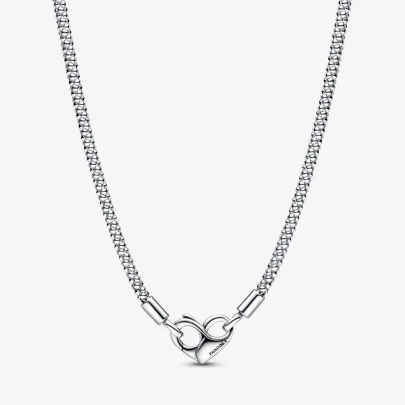 We are thrilled to introduce the Pandora Moments Women's Sterling Silver Necklace - Silver 392451C00-45. A stunning piece designed especially for women who love to wear their elegance around their neck. This necklace is exquisite in its simplicity. The 925 Sterling silver lends a sophisticated touch to the necklace, making it an absolute essential for every jewelry collection. The necklace measures 1.14cm in height, 1.45cm in width, and has a total length of 45cm. It's the perfect size to accentuate your style without being overbearing. The vibrant silver color of this necklace will complement your outfit in the most charming way. Crafted with meticulous attention, this Pandora necklace has all the makings of a piece that you will treasure for years. Experience the moments that matter with this captivating piece from the Pandora Moments Collection.