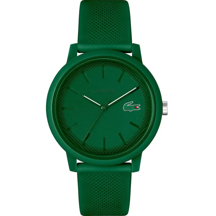 The Lacoste® Analogue '12.12' Men's Watch 2011170 is a striking accessory designed for men who value both functionality and style. This casual timepiece features a bold green resin case, measuring 42mm in diameter, complemented by a sleek 10mm thickness. The round face displays a matching green dial covered by durable mineral glass, ensuring clarity and resilience. Powered by precision quartz movement, it guarantees accurate timekeeping for your busy lifestyle. The green silicone band, with a generous length of 21cm and width of 20mm, is designed for both comfort and durability. Secured with an easy-to-use buckle clasp, this watch is perfect for everyday wear. With a water resistance of 5 bars, it can withstand splashes and brief immersion without worry. Whether you are at work, out with friends, or enjoying leisure time, the Lacoste '12.12' Men's Watch is a versatile addition to your wardrobe that seamlessly combines functionality with a sporty aesthetic.