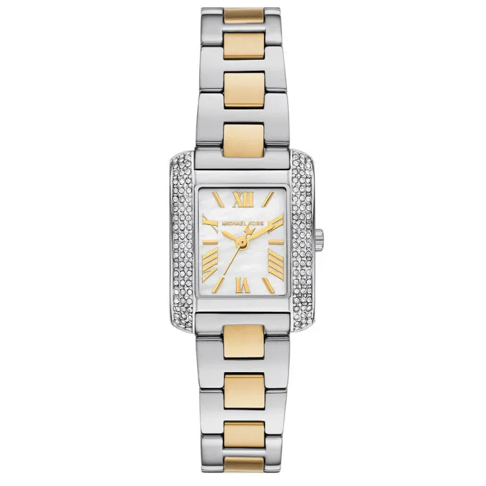 Introducing the exquisite Michael Kors® Analogue 'Emery' Women's Watch MK4882, crafted for the modern woman who seeks elegance with a touch of sparkle. The stunning rectangular stainless steel case, measuring 28mm in length and 21mm in width, is adorned with captivating stone settings that add a dash of glamour to your wrist. The delicate mother-of-pearl dial reflects light beautifully, enhancing the overall aesthetic of this charming timepiece. Complementing the stunning face, the watch's mineral glass window provides durability while maintaining clarity, ensuring that you can always keep track of time in style. This watch features a smooth quartz movement, guaranteeing reliable timekeeping, which is essential for today's multitasking women. With a thickness of just 8mm, the slim profile sits comfortably on the wrist, making it perfect for both day-to-night wear. The multicolour stainless steel band, measuring 19cm in length and 13mm in width, adds a playful twist to any outfit while the fold-over clasp with push-button ensures security and ease of wear. The Michael Kors® 'Emery' Watch boasts an impressive 5 bars of water resistance, allowing you to wear it confidently in various environments. Weighing only 62 grams, it is light enough for everyday wear yet substantial enough to signal style and sophistication. Embrace the enchanting experience of accessorizing your wardrobe with this remarkable piece that exemplifies both function and fashion.Shop Michael Kors MK4882 at Ormoda