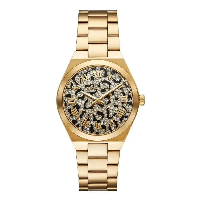 Introducing the Michael Kors® Analogue 'Lennox' Women's Watch MK7500, a dazzling piece that perfectly embodies elegance and sophistication. This timepiece is designed with the modern woman in mind, blending luxurious details with functionality. The watch features a stunning round case crafted from high-quality stainless steel, finished in a radiant gold tone that whispers of opulence. Measuring 37mm in diameter, the sleek design plays well with any outfit, from casual daywear to glamorous evening attire. It boasts a delicate thickness of just 9mm, making it easy to wear all day long. On the face of this exquisite watch, a gold dial competes the timeless allure, protected by durable mineral glass that ensures clarity and longevity. The analogue display is easy to read, allowing you to stay punctual and polished. With a water resistance of up to 5 bars, the Lennox isn't just about looks; it's designed to withstand the elements as well. The stainless steel band complements the case beautifully, measuring 19cm in length and 19mm in width. It features a fold-over clasp with a push-button, ensuring a secure yet comfortable fit on your wrist. Whether you're elevating your daily ensemble or looking for a statement piece for an evening out, this watch is the ultimate accessory that reflects your taste and aspiration.Shop Michael Kors MK7500 at Ormoda