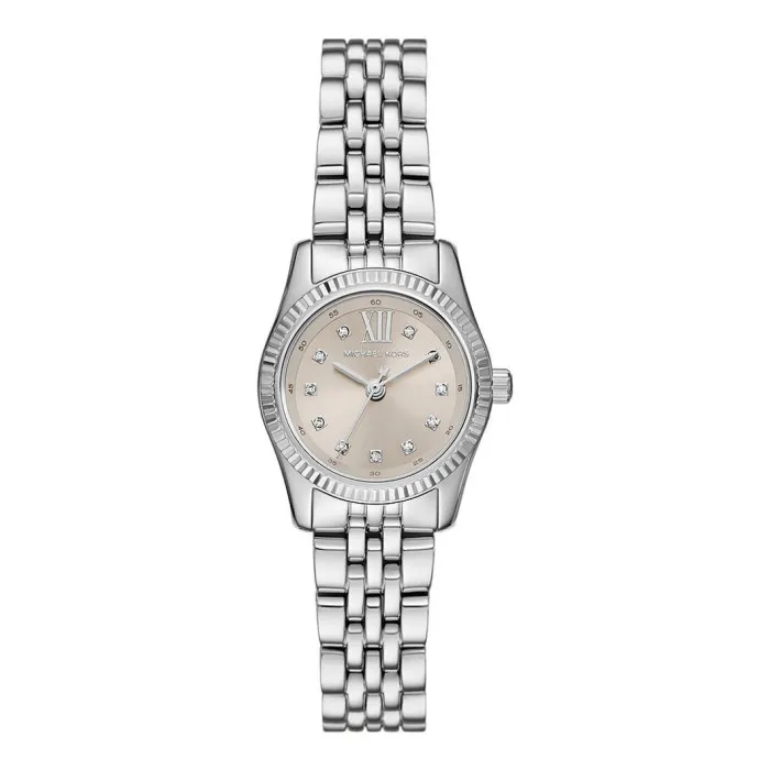 Introducing the Michael Kors Analogue 'Lexington' Women's Watch MK4843, a stunning piece designed for the modern woman. This exquisite watch showcases a delicate yet striking round case fashioned from stainless steel that gleams in a chic silver tone. With a case diameter of 26mm and a thickness of just 8mm, it is perfectly understated for both everyday wear and special occasions, allowing for effortless transitions from day to night. The green dial is a refreshing twist that adds a unique flair to your ensemble. Protected by durable mineral glass, the dial displays time with elegant precision on an analogue layout, ensuring you arrive punctually in style. The watch features a reliable quartz movement, offering both accuracy and ease of use. Complementing the sophisticated case, the stainless steel band integrates beautifully with a fold-over push-button clasp that guarantees both security and ease of wear. With a band length of 19cm and a width of 13mm, it comfortably adorns the wrist, making it an ideal accessory for all-day wear. Water-resistant up to 5 bars, the watch is not only fashionable but practical, ensuring that it remains a loyal companion, rain or shine. The Michael Kors Analogue 'Lexington' Women's Watch is a true reflection of elegance and functionality, making it the perfect gift for yourself or a loved one. Embrace timeless elegance with this signature piece that will surely make a statement.Shop Michael Kors MK4843 at Ormoda