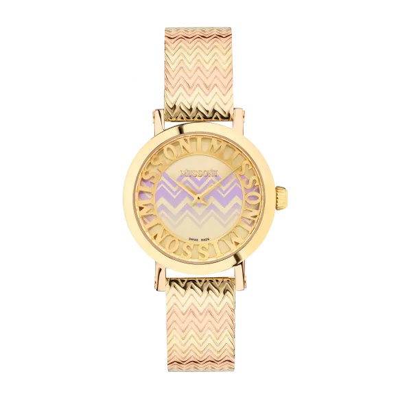 Missoni is a renowned Italian luxury brand, celebrated for its chic and vibrant designs that blend artistry with everyday elegance. The brand originated in the late 1950s, founded by Ottavio and Rosita Missoni, and quickly became synonymous with innovative textiles and captivating patterns. Their dedication to craftsmanship and quality is evident in every piece, including their exquisite timepieces and jewelry lines. With a belief in creating iconic, statement-making accessories, Missoni continues to inspire fashionistas around the globe. Each watch reflects not only the brand's heritage but also its commitment to pushing boundaries while remaining rooted in elegance. The Melrose collection represents a blend of bold aesthetics and refined sensibility, making it a must-have for those who appreciate luxurious timepieces that tell a story.