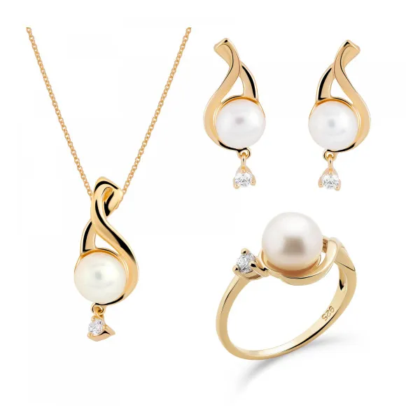 Orphelia® 'Adia' Women's Sterling Silver Set: Necklace + Earrings + Ring is a mesmerizing collection that embodies elegance and sophistication. This exquisite set features a stunning necklace that gracefully adorns the neck, with a length that can be easily adjusted for the perfect fit. Its luxurious gold hue beautifully complements the radiant freshwater cultured pearls and brilliant zirconium gems, enhancing the set's allure. The necklace also displays a refined lobster claw clasp, ensuring both ease of wear and security. The matching earrings are equally captivating, showcasing a design that draws attention with their intricate beauty. Adorned with round white freshwater pearls, these earrings feature butterfly back findings that provide a secure and comfortable fit, allowing you to wear them effortlessly from day to night. Each piece in this set is crafted with a meticulous attention to detail, using only the finest 925 sterling silver to ensure lasting quality and shine. Completing the collection is a stunning ring that mirrors the elegance of the necklace and earrings. Set with a delightful round pearl, this piece adds a touch of sophistication to any outfit, making it perfect for both casual outings and formal occasions. At a total weight of 8.60 grams, the Orphelia® 'Adia' set is lightweight yet impactful, making it a must-have addition to every woman's jewelry collection. Whether purchased for yourself or as a gift, this elegant set is sure to be cherished for years to come.