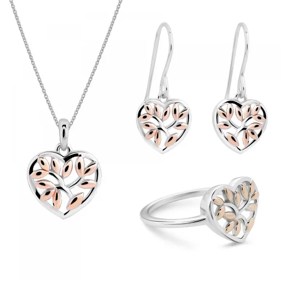 Orphelia® 'Afia' Women's Sterling Silver Set: Necklace + Earrings + Ring - Silver/Rose SET-7474