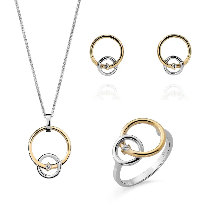 Introducing Orphelia® 'Antoine' Women's Sterling Silver Set: Necklace + Earrings + Ring - Silver/Gold SET-7503/1