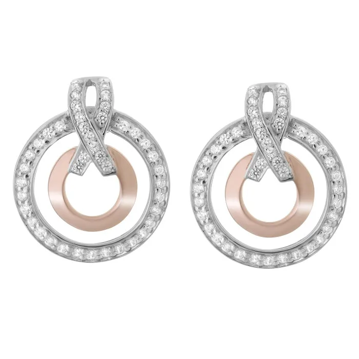 Introducing Orphelia® 'Azalea' Women's Sterling Silver Drop Earrings - Silver/Rose ZO-7095/1