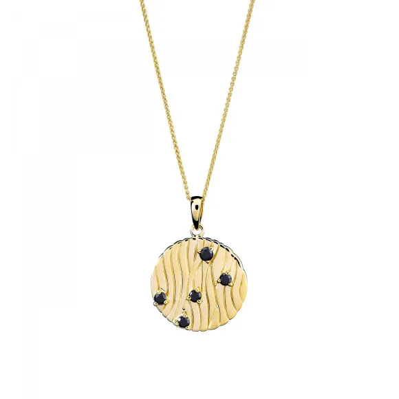 The Orphelia® 'Babette' Women's Sterling Silver Chain with Pendant - Gold ZH-7504/G embodies elegance and grace, tailored for the modern woman who appreciates the finer things in life. This exquisite piece features a beautifully designed chain, artistically crafted from high-quality 925 sterling silver. The rich gold tone adds a luxurious touch, making it a perfect accessory for both casual and formal occasions. The thoughtful design includes a pendant that is not only eye-catching but also meaningful, measuring 3cm in height and 2.1cm in width. At 42cm long, with an additional 3cm extension, you can customize its fit to enhance your neckline, ensuring it sits beautifully whether worn alone or layered with other pieces. The pendant features a stunning black zirconium gem, which adds a touch of mystery and sophistication. This striking color contrasts beautifully against the warm gold of the chain, creating a visually appealing balance. The lobster claw clasp ensures security and ease when putting on or taking off your beloved necklace, allowing you to transition from day to night effortlessly. Designed for the discerning woman, this necklace makes a thoughtful gift or a statement piece to add to your jewelry collection, promising to turn heads and spark conversations wherever you go.Shop Orphelia ZH-7504/G at Ormoda